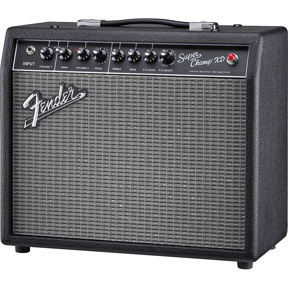 In Fender's words: Our Super Champ™ XD takes the vintage Champ into a new era with classic styling, simple controls, a good variety of clean and distorted tones and unmistakable tube feel and performance at a remarkable price. Features include a real 15-watt tube amp combined with up-to-date extras including versatile amp voicing and superb DSP effects. Its solid-state overdrive and distortion eliminate many of the preamp tube problems that plague tube lovers while providing exemplary tones for rock, blues, country, jazz, metal and more.