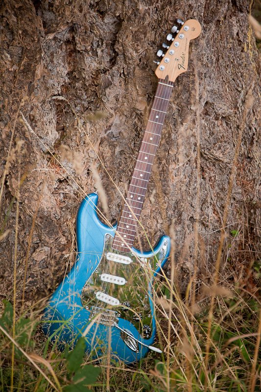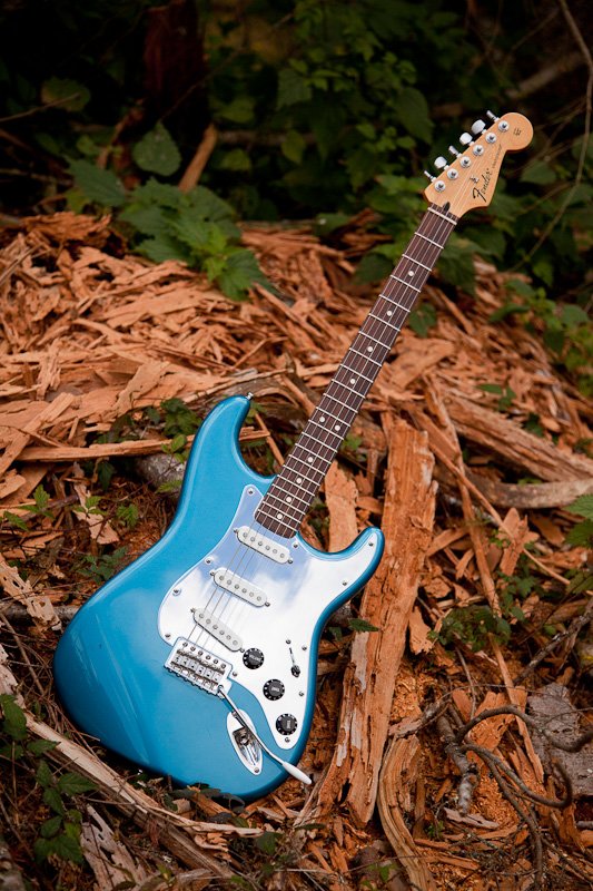 My goal with this guitar was to play around with the electronics, replacing the pickups and pots and try to turn a lower cost Mexi-Strat into a very flexible tone machine! So far, it is working great. I've replaced the stock pickups with two Lindy Fralin vintage hot single coils and the humbucker is a Lindy Fralin Pure PAF. It sounds awesome! I replaced the white pickguard with a Fender pearloid one so it is pretty easy to tell which shots are the before and after shots.