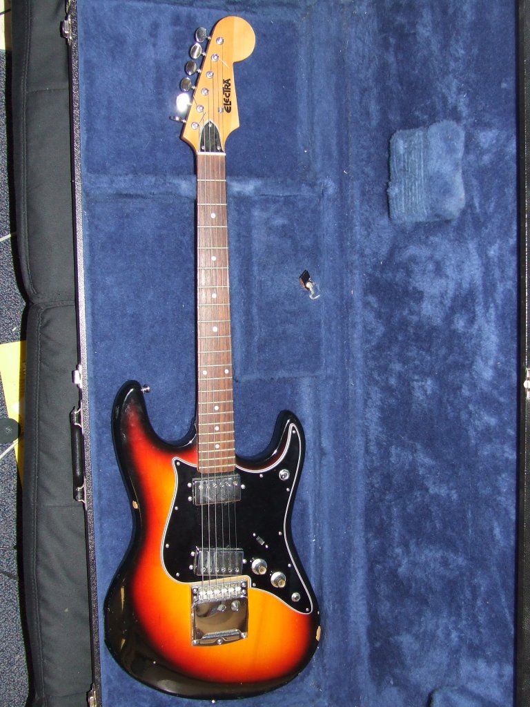 The electra sustainer is a dual humbucker, strat-style guitar. according to the previous owner, it was made in the 1970's but not quite sure what year. plays pretty nice. for only 150 i got it with the hardshell case. saw an ad for a musical instruments garage sale the night before my birthday and bought it on my birthday :) Some General Specs: =strat-style =sunburst finish =dual humbuckers =bold on neck w/ rosewood fretboard (21 fret) =3 way selector switch =toggle switch of some sort (like coil tap or mid cut) =intresting tremolo system (no springs) Electra made lots of guitars somewhat based on some of the great models. I believe they were one of the companies that got sued by gibson for making a les paul-like guitars :) well, enjoy,