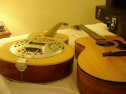 A gift from my mentor Jeff Hostetter to show me how to do setup work on dobros, this started out a pretty unimpressive instrument. They retail for about $120. However, after manipulating the cone ring by removing wooden baffles, then leveling the rim of the ring for the cone to sit on, then upgrading to a Beard cone, removing the heel rest over the bridge, adding rosewood-tipped split saddle and more >